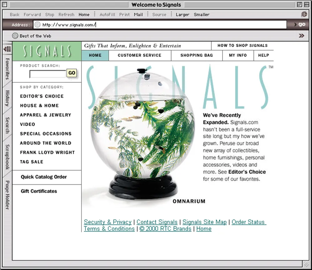 Homepage of the Signals website I designed, as it appeared in early 2000. And, yes, that’s an early version of my Blakely typeface, which was originally created for Signals.