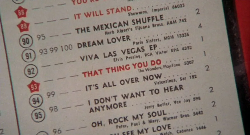 That Thing You Do (1996, 20th Century Fox). This is a fun movie to watch. Although I was only eight in 1964, this movie really seems to capture the look and feel of the period.