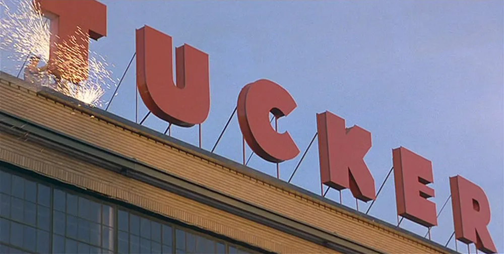 There’s not a lot of type in this film, but what there is is right on the money, including the titles, which seem as if they have been taken from an actual forties-era film. There are a lot of great signs (like the giant TUCKER factory sign), but there is one that isn’t quite right.