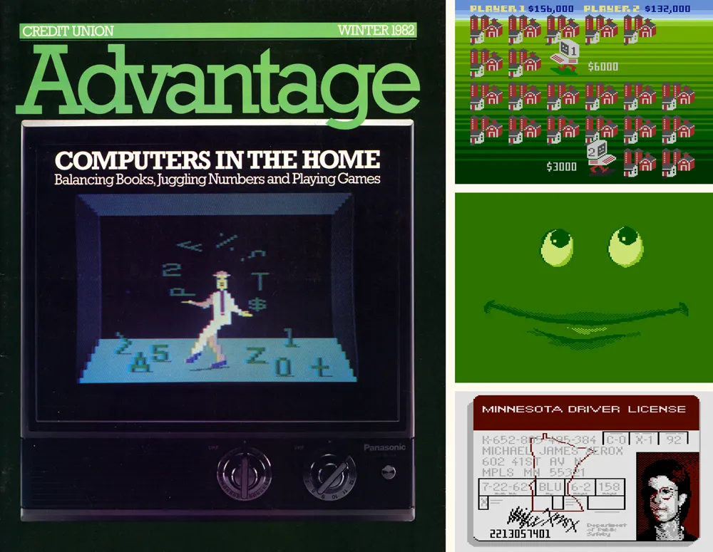 Over the next two years, I did illustrations with my Atari for other magazines, including Credit Union Advantage, where I was design consultant in my spare time, two illustrations for The Farmer, a magazine that shared the same publisher as *Ambassador,*and a “digital driver’s license” for AAA Magazine.