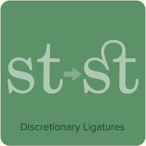 - Ligatures (fi, fl, ff, ffi, ffl).