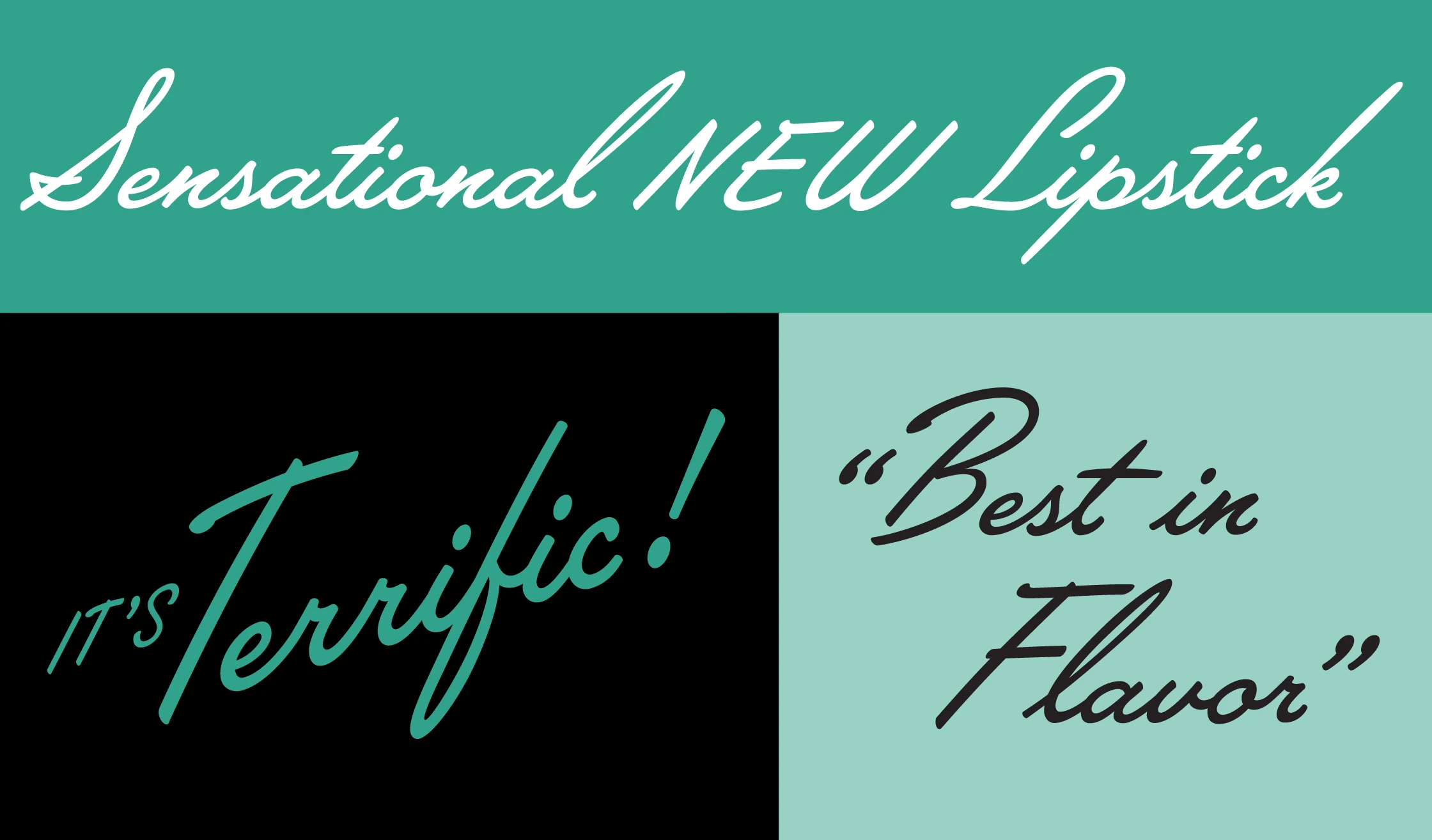 Lakeside (2008) is a flowing 1940s-style brush script, inspired by hand-lettered titles in Otto Preminger’s classic 1944 film noir movie “Laura.” Lakeside uses OpenType magic to automatically mimic real Script lettering, choosing the best letter shapes based on where they fall in a word and what letters are nearby. It also includes three sizes of capitals: Normal capitals for typical settings, tall capitals for a more elegant effect, plus a small, plain set of capitals for setting in all caps, something not usually possible with script faces.