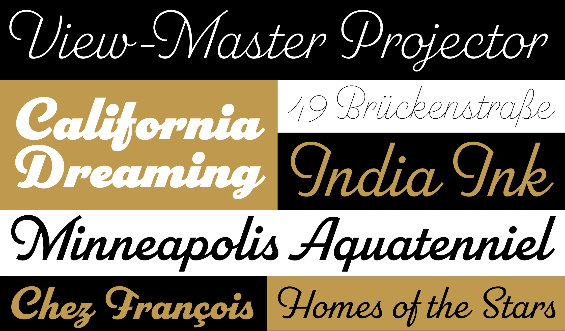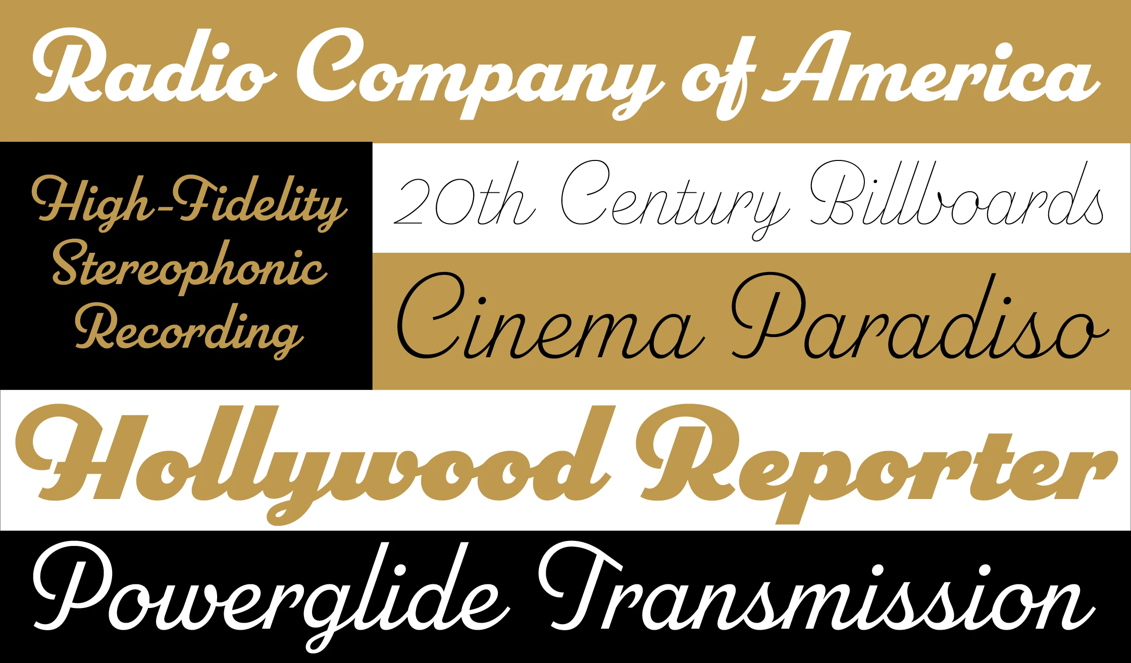 Parkside (2018) is a script typeface inspired by typefaces and lettering of the 1930s and 1940s. Unlike metal typefaces from that era, it takes advantage of modern digital typography, where letters may overlap and automatically change shape to better flow with surrounding letters. There are six weights (Hairlline, Thin, Light, Regular, Bold, and Black). Parkside has extensive language support, covering most Latin-based writing systems. Parkside uses OpenType magic to automatically select letter variations that seamlessly connect to the letters coming before and after.
