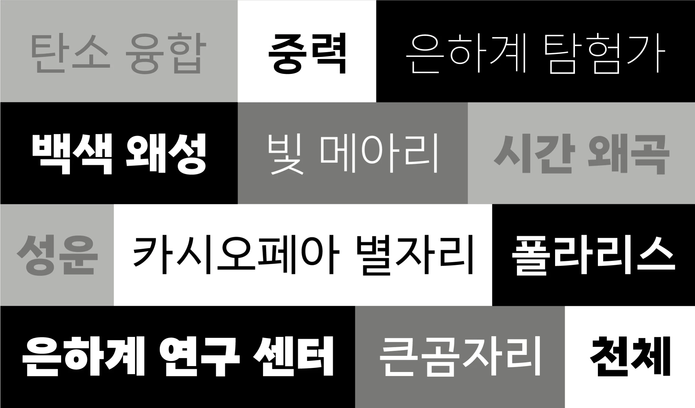 Proxima Nova Hangeul (2024) was designed by lo-ol Type Studio for the Proxima Super Nova collection. Hangeul — the alphabet used for the Korean language — is structurally larger than Latin, requiring adjustments to align visually with the original and maintain the distinctive script’s integrity. Also important is balancing grotesque and geometric sans details to capture the essence of Proxima Nova. Available in eight weights — Thin to Black — this growing family of typefaces is ready to become even more popular worldwide.