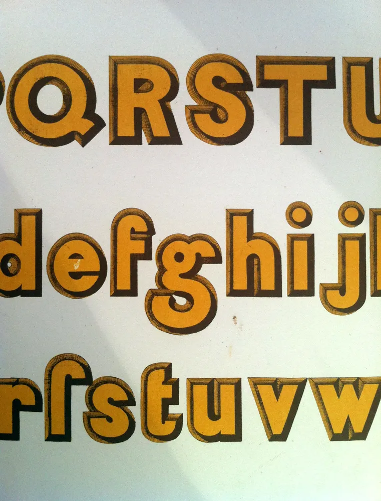 Saw this at Mystic Blue Signs in New Orleans last summer during TypeCon. It was in a big old French book about lettering and engraving. I wish I’d written down some information about it. I think it was from around 1880. Heard from someone that it is from 1859.