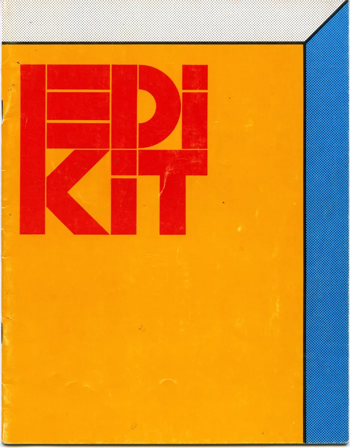 That “Edikit” image I posted yesterday was just one piece of the whole kit, the only part I still have that’s intact. It’s the cover of a 28-page booklet of half-size layout grids printed on one side of each page in non-photo blue (light blue) ink. The only text is printed on the inside front cover in 24-point Century Schoolbook, centered, capitalization as shown: