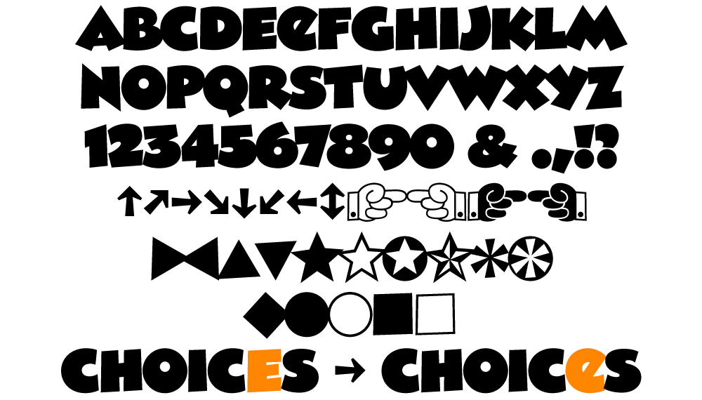 I tried to push the weight as far as I could without sacrificing legibility. It has an alternate lowercase “s” (in case you’re not into that old-school cursive form) and a set of matching dingbats and symbols.