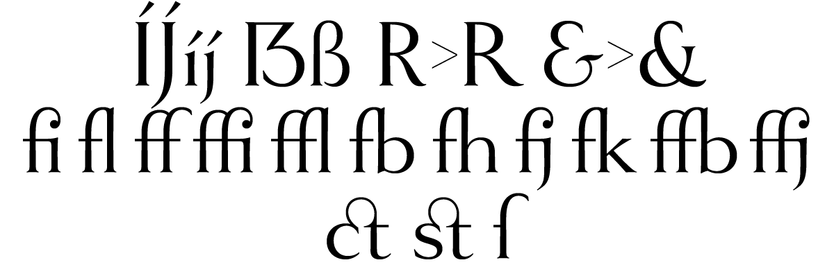 I made many other improvements to Goldenbook, like extending language support to add things like the acute IJ/ij for Dutch and the controversial capital sharp S for German. I also added an alternate long-tailed R (a user request), a more traditional-style alternate ampersand, a full set of “f” ligatures, and the historical ct and st ligatures, and long s.