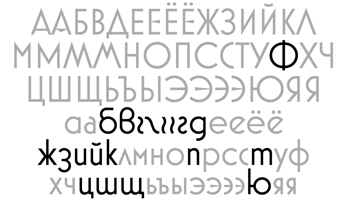 Second, I’ve added support for Cyrillic. I’ve been doing this a little at a time with my existing type families. So far, I’ve added Cyrillic to Proxima Nova, Proxima Soft, Goldenbook, Refrigerator Deluxe, Changeling Neo, and Felt Tip Roman. It was quite fun to do Cyrillic for Mostra Nuova. I found lots of examples of Cyrillic Art Deco lettering online to get an idea how it should work. But I also got feedback from Russian type designer Ilya Ruderman, to make sure what I was doing made sense to native readers. (I’ve gotten to know the Cyrillic alphabet fairly well over the years, and can sound out words, but I can’t really read it.)