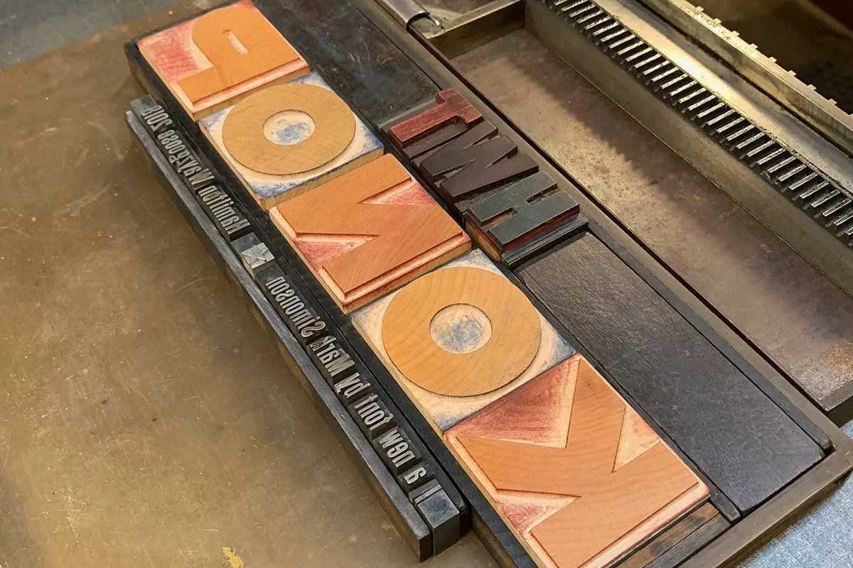 When I was asked in 2014 by Bill Moran, artistic director of the Hamilton Wood Type & Printing Museum, to come up with an original wood type design for The Hamilton Wood Type Legacy Project, I wanted to do something that would take advantage of the unique properties of wood type, but also something that hadn’t been done before.