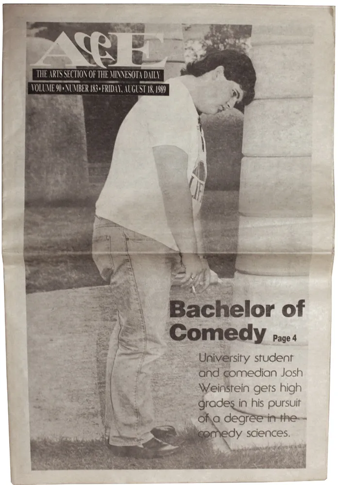 Josh Weinstein, on the cover of the Minnesota Daily’s arts section, around the time he performed at the U of M’s student union.