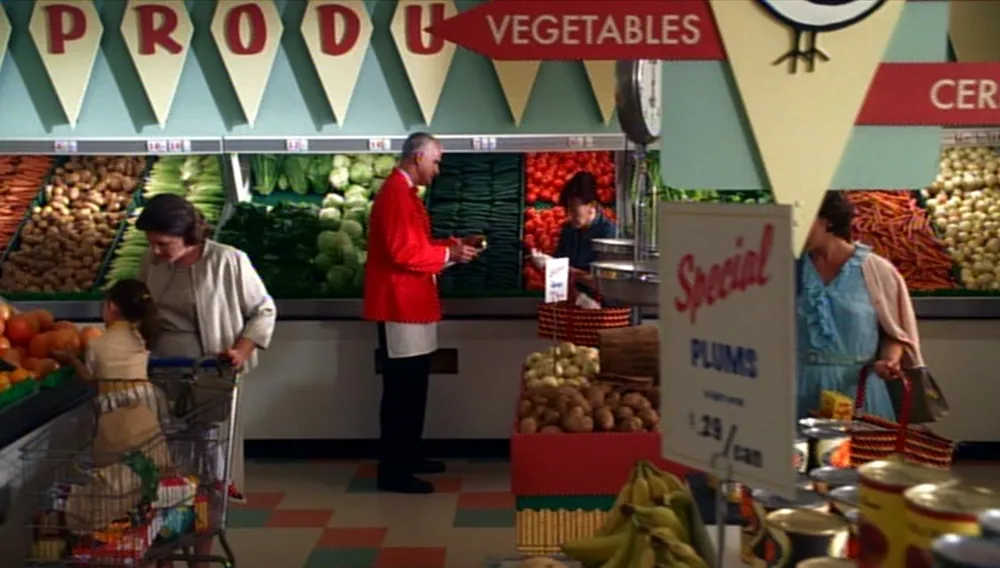 This grocery store interior is also quite good. Some casual brush style lettering and Futura again, not feeling out of place at all.