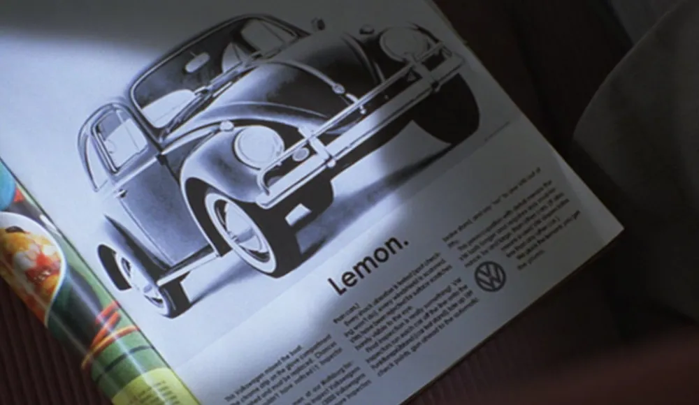 Then there are the ad layouts, supposedly produced by the art department at Sterling Cooper. You can tell the layouts are done with markers and pencils, as they would be, although they seem too sketchy. Perhaps this is to help them “read” as marker layouts on TV. The ad designs feel flat-footed and mediocre, but we also know that Sterling Cooper is not in the vanguard of advertising—they scoff at this clever and now-famous Doyle Dane Bernbach Volkwagen ad—so maybe that’s intentional. On the other hand, they are way ahead of their time when it comes to type, using faces that didn’t even exist yet.