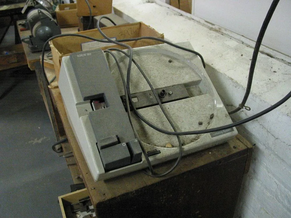 A dusty Kroy lettering machine from the 1970s sat in a corner. Probably they just used it for making labels on drawers.