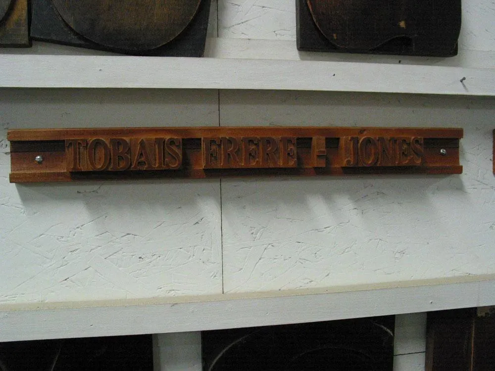 Along one wall in the museum were the names of benefactors set up in wood type. Tobias Frere-Jones, of Hoefler Frere-Jones Type Foundry, was among them. Unfortunately, they spelled his name wrong.
